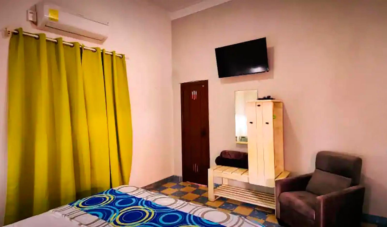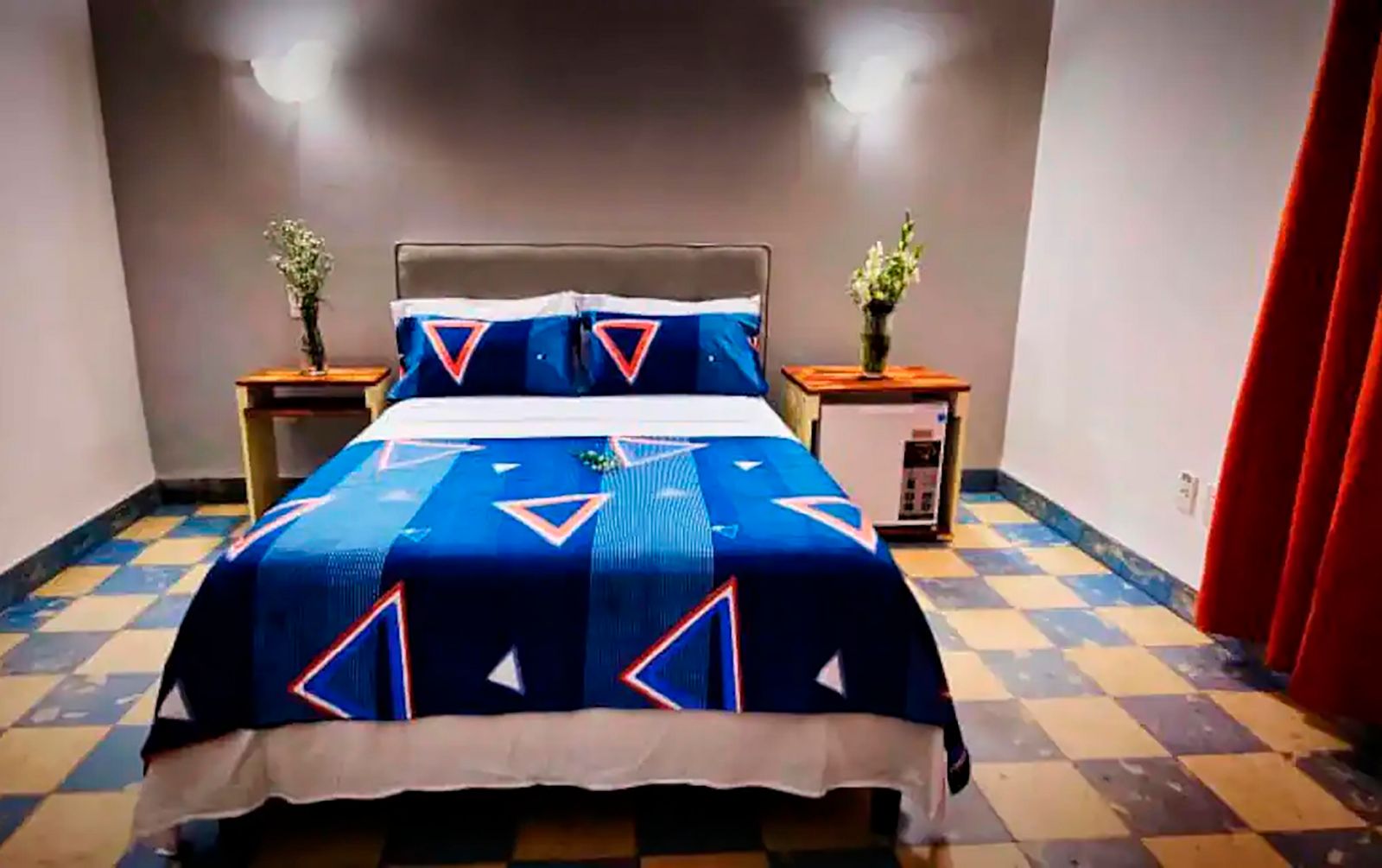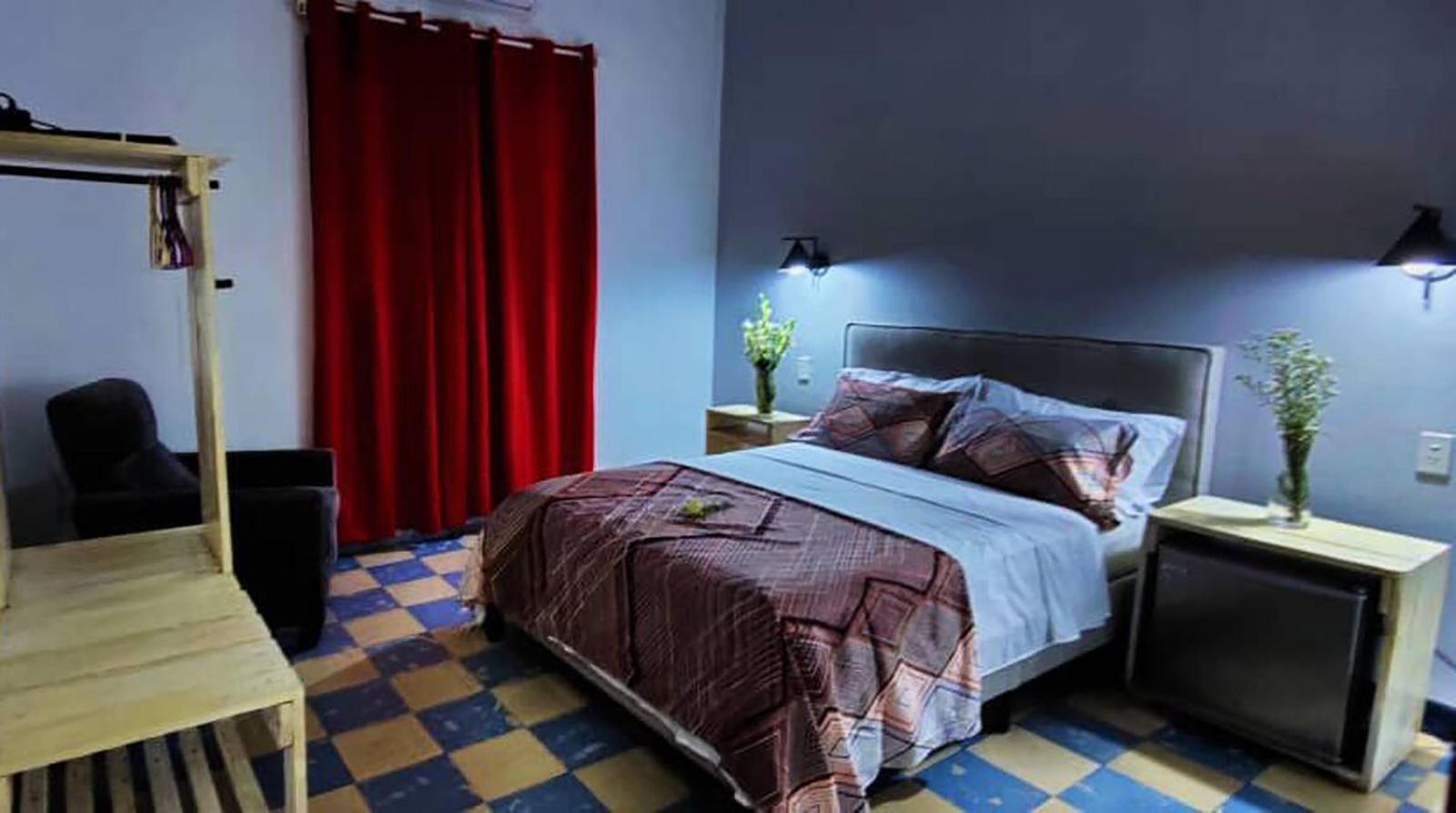 Room equipment: A/C, private bathroom, Wi-Fi, fan, 120V and 240V electrical current, and safe.